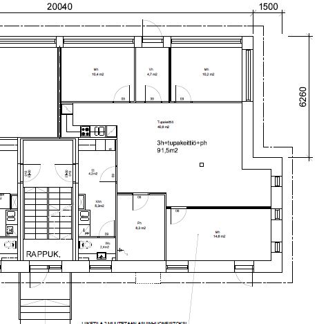 Noin 92 m2, 3 mh + iso tupakeittiö + kh + WC + kodinhoitotila + vaatehuone + parveke. Hyväkuntoinen.